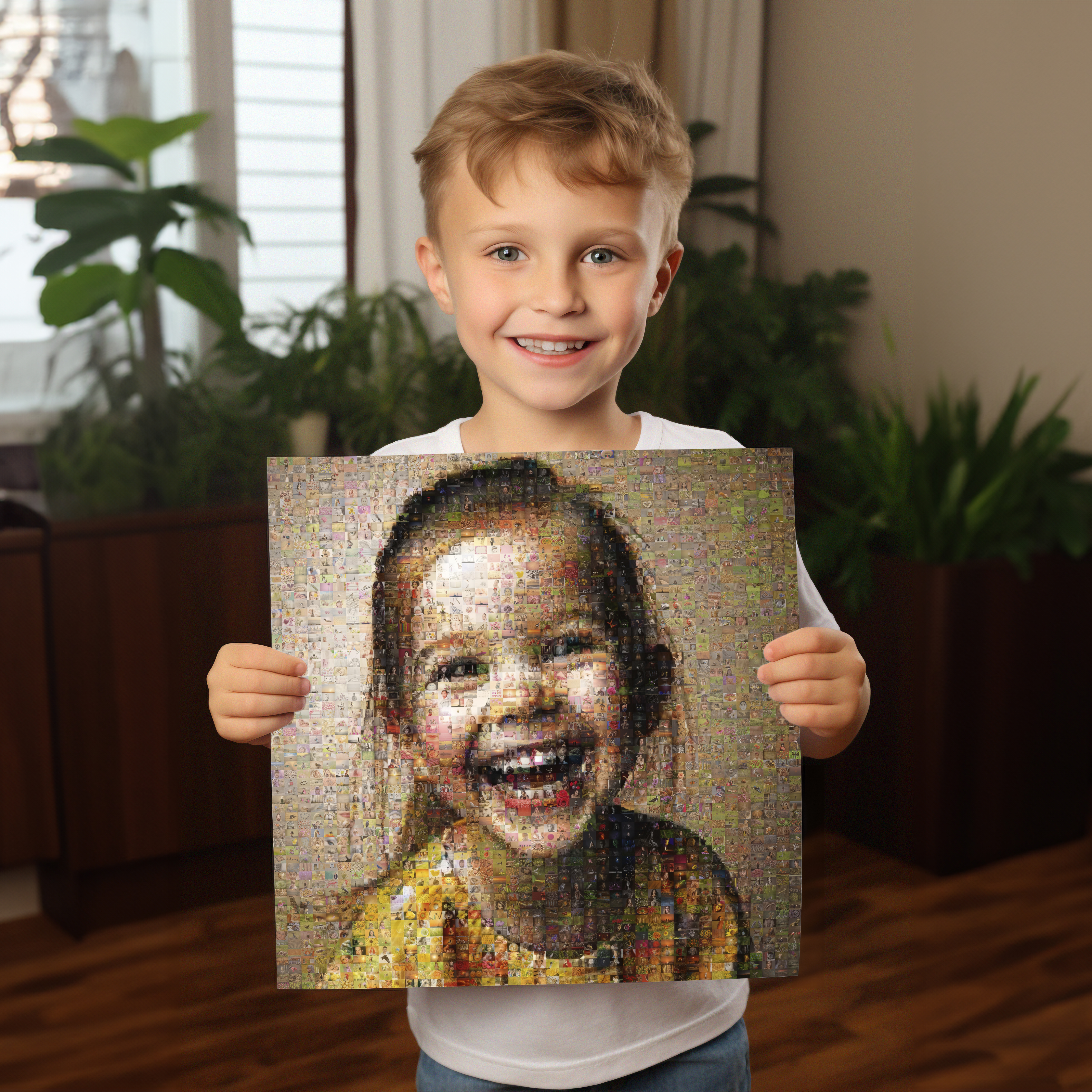 Stel je eigen unieke fotomosaïek samen en geef elke ruimte een persoonlijk tintje. Dit specifieke product is ideaal voor ouders, grootouders of vrienden die een bijzonder cadeau willen geven. Stel je talloze kinderfoto's voor die samen een groot en stralend portret van je kind vormen, een waar kunstwerk dat herinneringen levendig houdt.