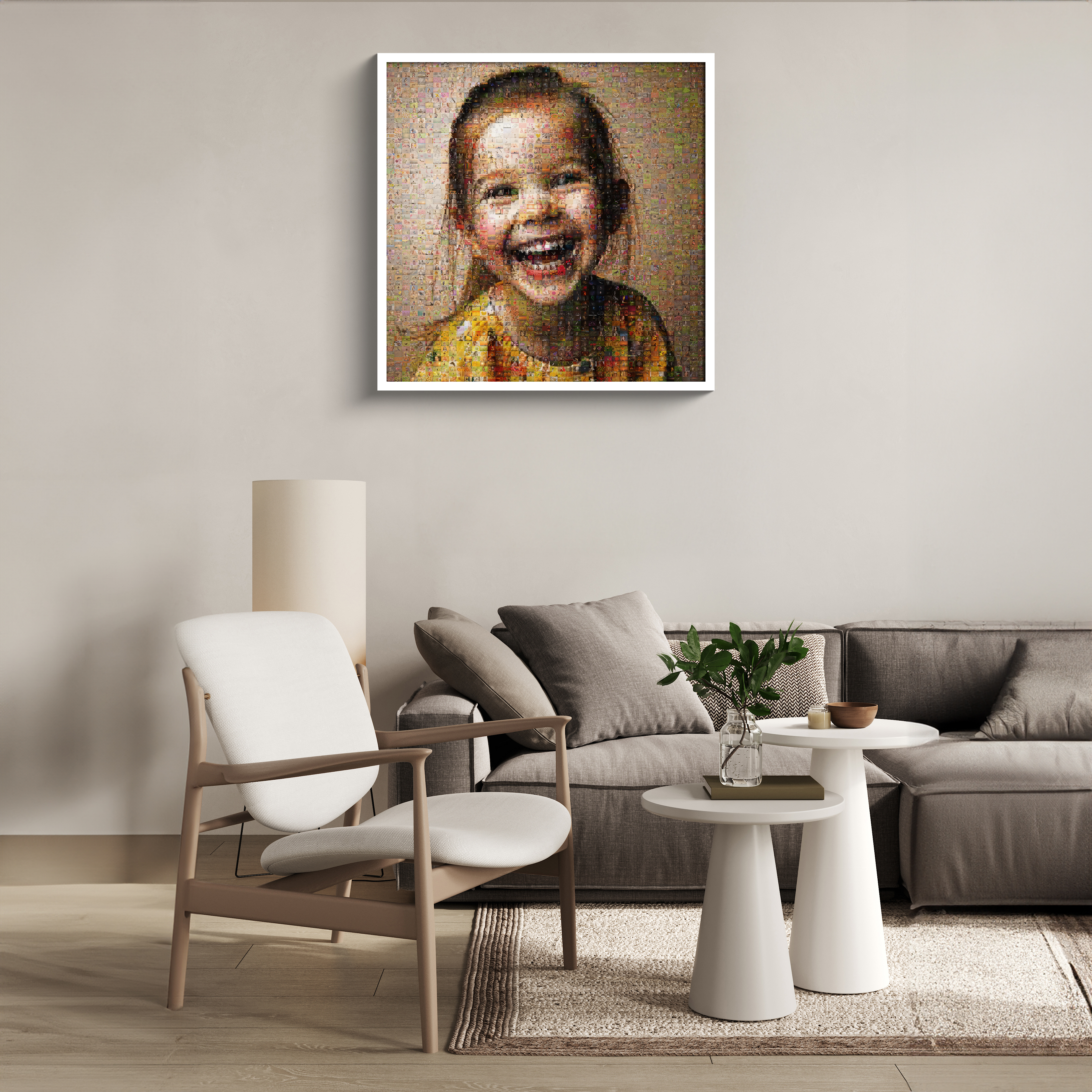 Stel je eigen unieke fotomosaïek samen en geef elke ruimte een persoonlijk tintje. Dit specifieke product is ideaal voor ouders, grootouders of vrienden die een bijzonder cadeau willen geven. Stel je talloze kinderfoto's voor die samen een groot en stralend portret van je kind vormen, een waar kunstwerk dat herinneringen levendig houdt.
